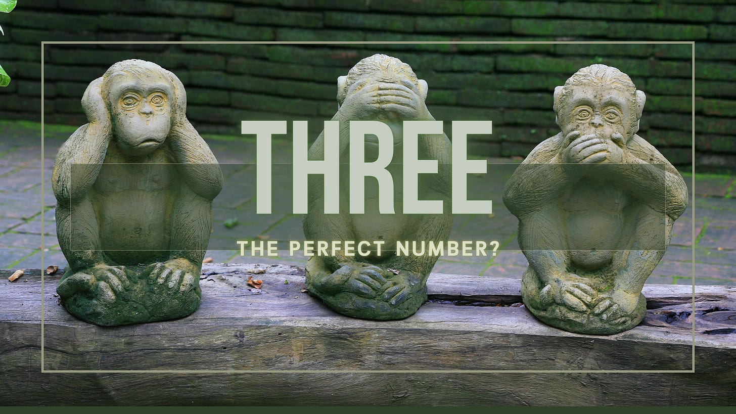 This poem grew from a fascination with the number three and how it shows up in so many different ways across cultures and ideas. For example, the photo of the three monkeys on this page relates to a Japanese proverb known as the sanzaru. One monkey, Mizaru, sees no evil (covers his eyes), another monkey, Kikazaru, hears no evil (covers his ears), and the third monkey, Iwazaru, speaks no evil (covers his mouth).