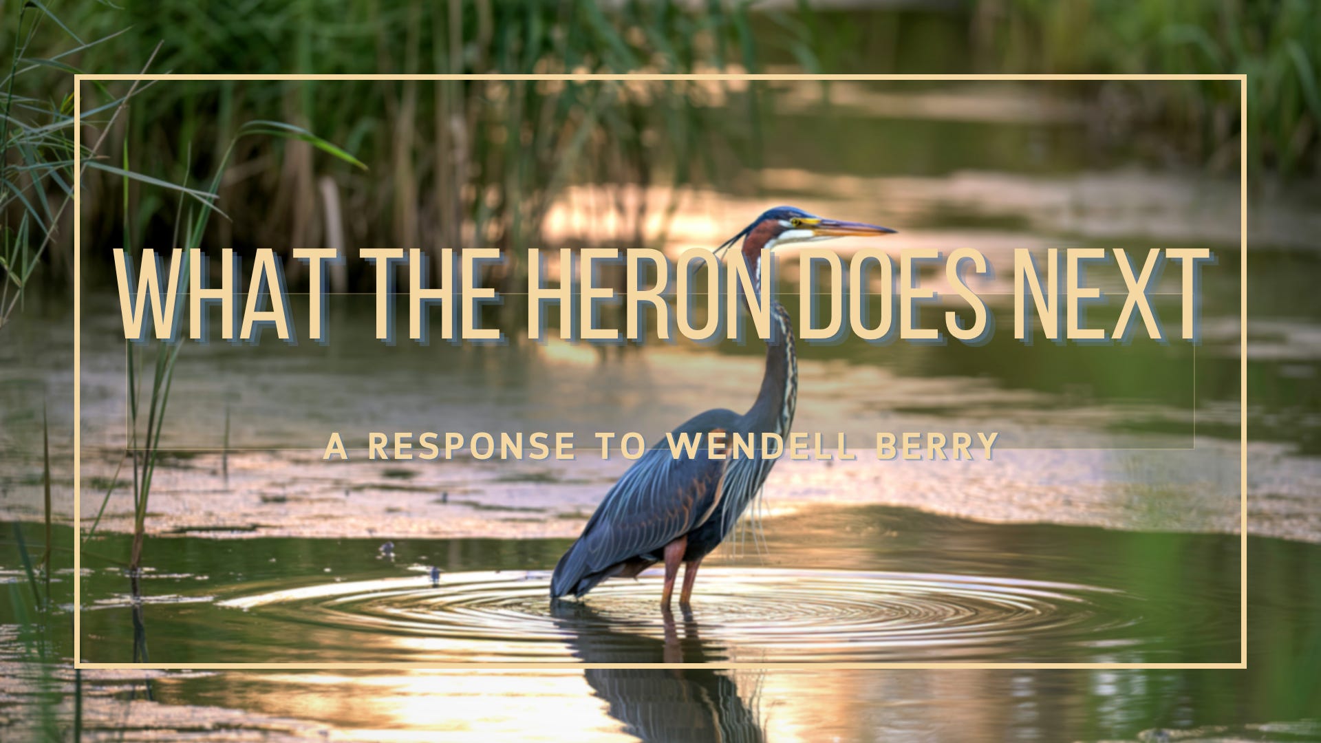 This is my response. WHAT THE HERON DOES NEXT by Caro Henry Wendell, I went. Not in despair, more that 3 a.m. thing with no name for it, just feet on cold floor and then the path downhill. Creek at the bottom, heron in his patience, reed-still, neck kinked back. And something in me did what you said it would. I’ll give you that. But then he struck—and that water closed over the absence like nothing had happened. Which was true. One small fish gone from the world, and the heron already still again. Grace is real. I stood in it. But on the way back up the hill I was counting again: bills, the news, what I’d said wrong the week before. Heron didn’t follow. Why would he?